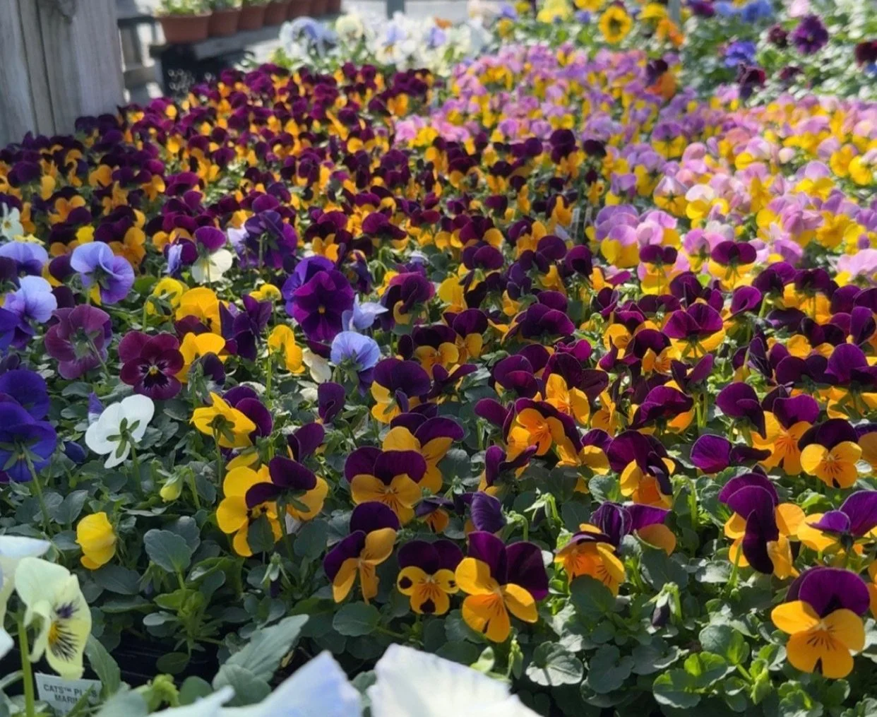 Flower and plant varieties include: Geraniums / Impatiens / Marigolds / Petunias / Dahlias / Snapdragons / Salvia / Daisies / Vegetable plants / Herbs.
